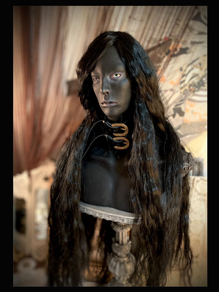素材: 石塑粘土・ジェッソ・グラスアイ・アクリルガッシュ・パステル・スワロフスキーストーン・化繊毛髪